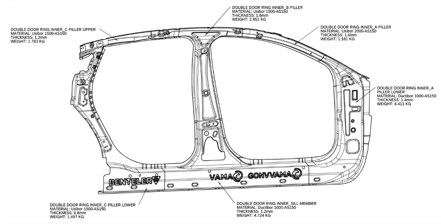 门环作为汽车发生碰撞时最为关键的承载部件,其结构的强度、刚度、吸能等性能对保障驾乘人员的安全至关重要。近日,汽车材料网获悉,凭借在热成形钢技术领域的深厚积累和创新能力,本特勒、VAMA、GONVVAMA合作成功开发了热成形超大型结构的内外双门环,标志着热成形技术在车身结构安全件创新应用领域又迈出了重要一步。