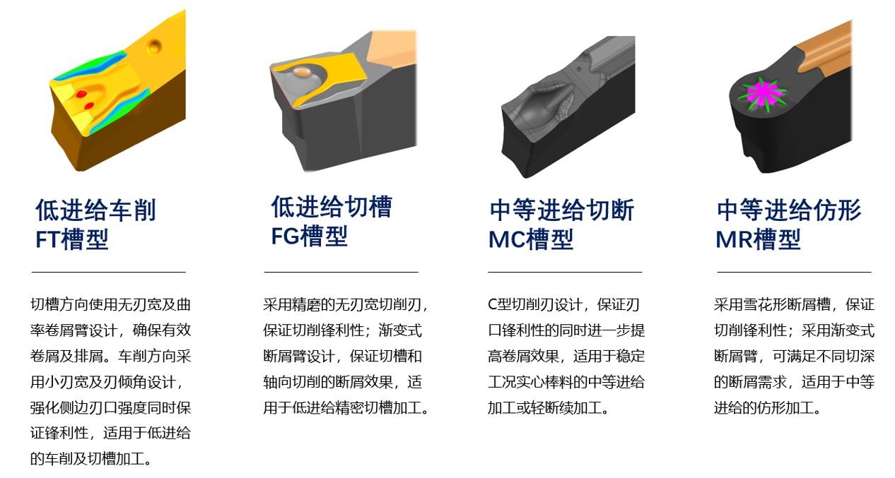 厦门金鹭全新推出的GT双头切断切槽系列,广泛运用于轴齿、涡轮壳、皮带轮、套管等汽车零部件中。其涵盖切断、切槽、车削、仿形四种加工形式,共有11种槽型,刀片的刀宽范围从1.5mm到8mm。GT双头切断切槽系列采用全新的定位方式,大幅度降低横向车削及纵向切槽的刀片偏移及扭转,可实现高稳定加工。具备以下设计特点: