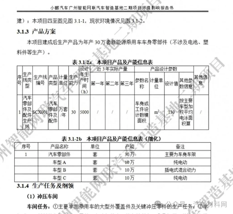 在小鹏汽车广州智能网联汽车的环境影响报告书之中明确注明了,小鹏汽车将开发车型B,采用插电式混合动力。
