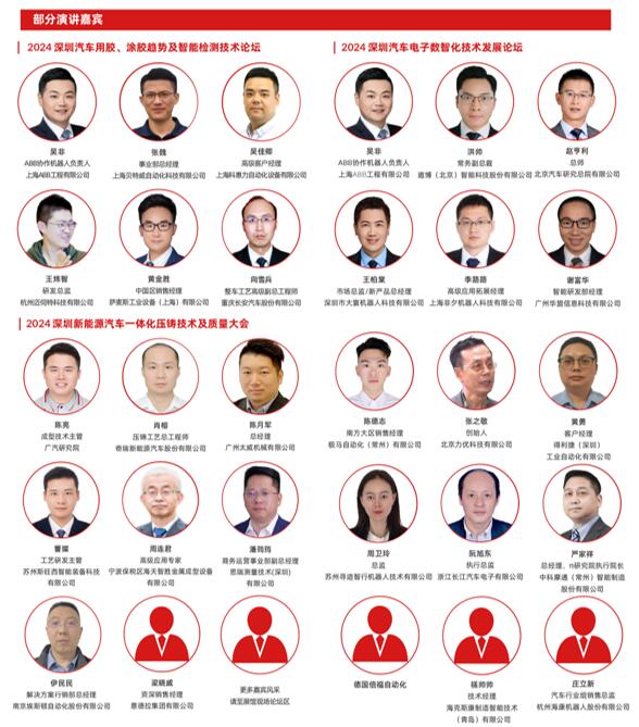 来自蔚来、奔驰、比亚迪、一汽、特斯拉、理想等头部企业的行业领军者都将到场,济济一堂,群贤毕集。旨在通过深入挖掘新能源三电与智造技术、汽车用胶涂胶趋势及智能检测技术、一体化压铸技术、汽车电子数智化技术的创新潜力与发展前景,为汽车工程及工业装配技术人员构筑一个全新的联接平台。