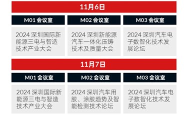 作为中国智造的倡导者与引领者,励进展览就"新能源三电"、"汽车用胶"、"一体化压铸"、"汽车电子"、"智能制造"等时兴议题创办的四场行业会议将于今年11月6日-7日在深圳国际会展中心(宝安新馆)16号馆内,与AMTS & AHTE SOUTH CHINA 2024同期举办,互相激发、共创工业数智化发展的新浪潮。