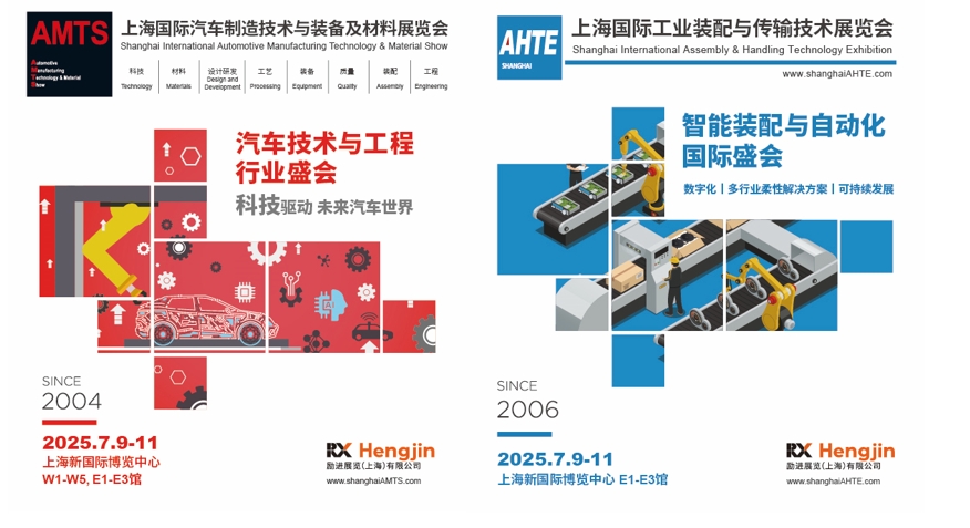 AMTS 2025及AHTE 2025档期已定!将于2025年7月9日至11日在上海新国际博览中心W1-W5、E1-E3馆举行。届时,我们期待与您再次相聚,共同见证汽车制造技术及设备领域的最新发展和创新成果!