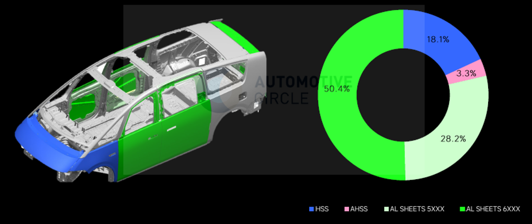 车门采用铝合金5系6系铝合金进一步减轻重量。