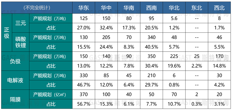 在区域布局上,钠离子电池的布局以华东为核心,但在西北也规划了较多产能,以满足储能需求。