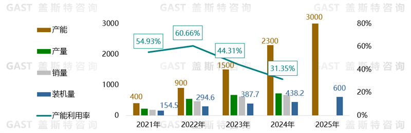 一是,动力电池总量过剩。据统计,2023年中国动力电池有效产能已超过1500 GWh,但产量仅有665 GWh,装机量不足400 GWh,现有产能已经过剩。同时随着企业前期规划和在建产能的陆续投产,这部分产能过剩会进一步加剧。预计2024年动力电池总体产能利用率会由2023年的44%降至31%。具体预测详见图1。