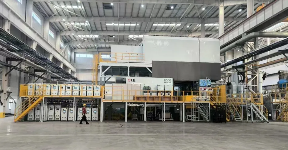 据了解,一体化压铸工艺已成为新能源汽车制造领域的主流技术之一。此次投入使用的9000吨级及5000吨级超大型压铸装备,主要用于生产一体化压铸电池托盘产品,这些产品是新能源汽车制造过程中的关键组件。