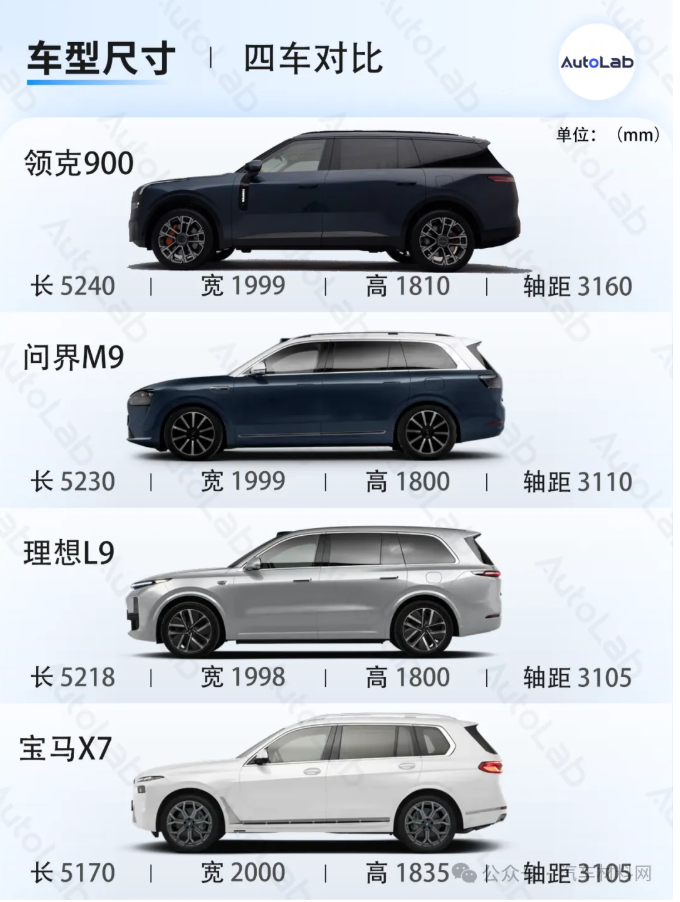 对比问界M9、理想L9等车型,不难看出,同样是“9字辈”的旗舰,在尺寸上领克900的优势非常明显,要大过了问界、理想、宝马等一众的竞争对手。