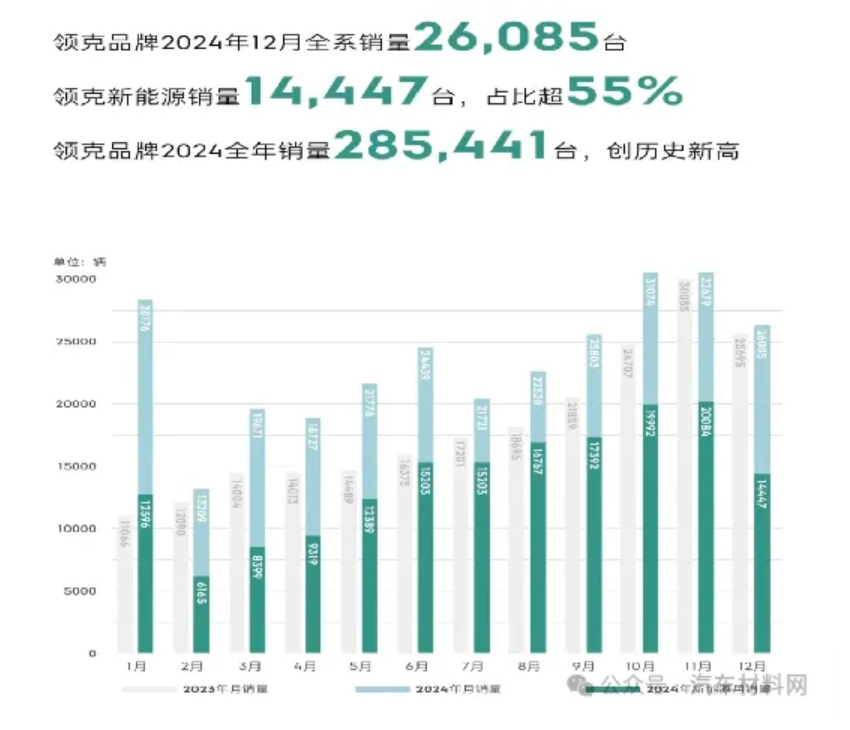 最新数据显示,2024年全年领克汽车累计销量为285441辆,同比增长近30%,创历史新高,同时超额完成28万辆年销量目标。