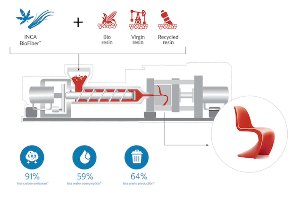 随着汽车制造商致力于降低其上路车辆的碳足迹,天然纤维增强复合材料的开发与商业化应用正加速推进。工程塑料供应商宝理塑料近日推出了一款由聚丙烯(PP)树脂与长纤维素纤维制成的环保复合材料。该材料具有低密度、高比刚度、高冲击强度及优化的阻尼性能,可应用于电动汽车电机部件、抬头显示器等多个领域。与此同时,加拿大Inca可再生技术公司宣布获得由艾伯塔省创新农业食品与生物产业创新计划提供的202,534美元资助,用于完成其新型大麻生物基复合材料的开发,并在丰田汽车及汽车一级零部件供应商处开展生产线试验。Inca Renewtech董事长兼首席执行官David Saltman表示,该资助将支持公司生产并试用数千磅Inca生物塑料。他进一步指出:"通过用天然纤维复合材料替代玻璃增强塑料,我们能使工业合作伙伴生产出更轻更强的产品。客户还可通过回收边角料降低成本,并制造出可循环利用的终端产品。"根据 GreenStep Solutions 的独立生命周期分析,加工商可以在现有的注塑设备上使用 Inca BioPlastics 颗粒制造产品,无需修改,用水量减少 59%,废物产生量减少 64%。图片由 Inca Renewable Technologies 提供。Inca公司计划在加拿大阿尔伯塔省韦格勒维尔市开展业务,从种植大麻栽培品种(用于植物蛋白生产)的农户手中收购大麻生物质,对这类可再生资源进行精加工,进而生产用于汽车及其他行业的高性能复合材料。这一举措将为农户创造额外收入来源,助力大麻成为加拿大草原地区最具经济价值的作物之一,并推动大麻栽培品种的多元化应用。丰田汽车制造与工程部首席工程师Scott Oppliger表示:"向环保材料的转型对降低碳足迹、减缓气候变化至关重要。Inca开发的注塑级和挤出级颗粒不仅有望提升终端产品的物理性能,还能显著减少二氧化碳当量排放。"碳足迹进一步降低 宝理塑料的Plastron LFT(长纤维增强热塑性塑料)RA627P采用含30%再生连续单向纤维素纤维的配方,其碳足迹较30%短切玻璃纤维增强PP树脂降低约30%。通过独特的纺丝工艺及原纤维素材料的聚合处理,再生纤维素纤维展现出优异的强度和弹性。此外,Plastron RA627P的密度较30%短切玻璃纤维增强PP树脂低约10%,同时保持相近的弯曲模量。该材料的比刚度优于30%短切玻璃纤维增强PP树脂,并具备更大的损耗系数。