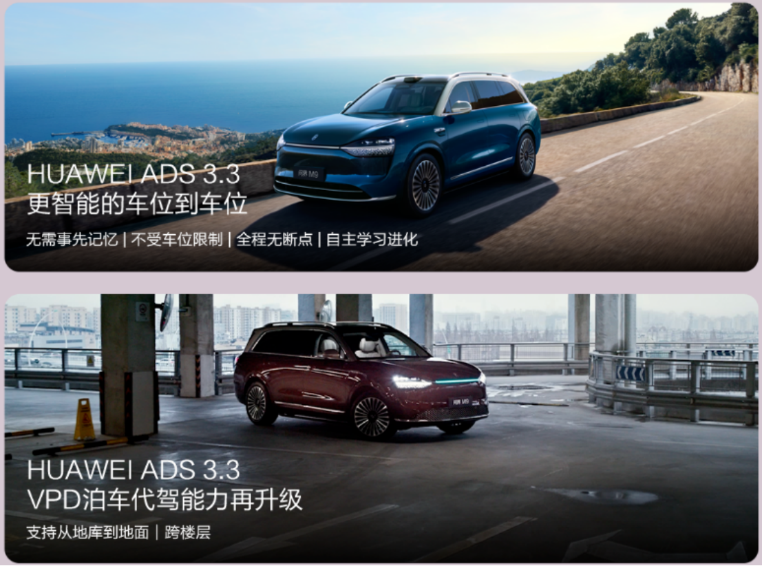 智能驾驶方面,2025款问界M9搭载HUAWEI ADS 3.3高阶智驾系统,配备了4个激光雷达。这使得该车具备了更智能的车位到车位泊车能力,无需提前记忆车位,不受车位类型限制,全程无断点以及支持自主学习进化。