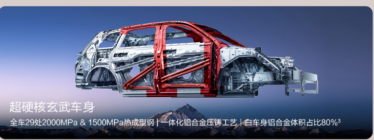 问界M9采用超硬核玄武车身,这一创新设计融合了多种先进材料与制造工艺,在保证超高安全性的同时实现了出色的轻量化表现。全车29处采用了2000MPa和15000MPa级热成型钢,被应用在A柱、B柱、门槛等关键位置。