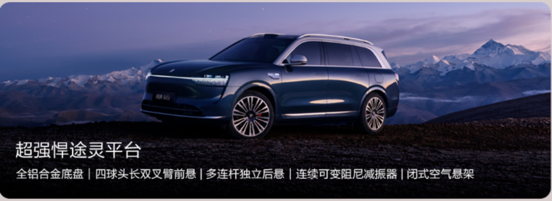 底盘方面,新款问界M9搭载华为途灵底盘,采用全铝底盘,配备前双叉臂式后多连杆式的形式,全系系标配智能闭式空簧和CDC可变阻尼减震器,车身高度5档智慧调节,兼顾舒适性与操控性。