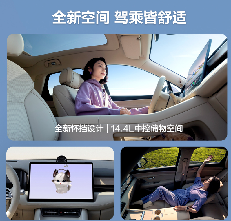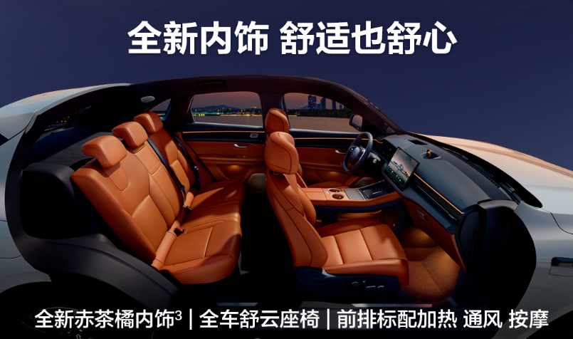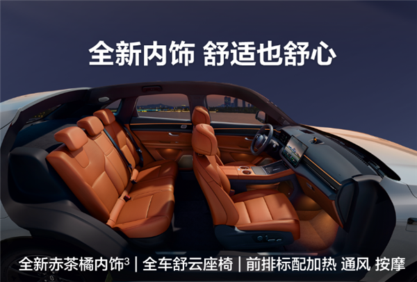 内饰方面,全系标配舒云座椅,采用10层舒适性叠层设计,前排具备通风、加热、按摩功能,后排配备双HUAWEI Maglink®,支持多设备联动。