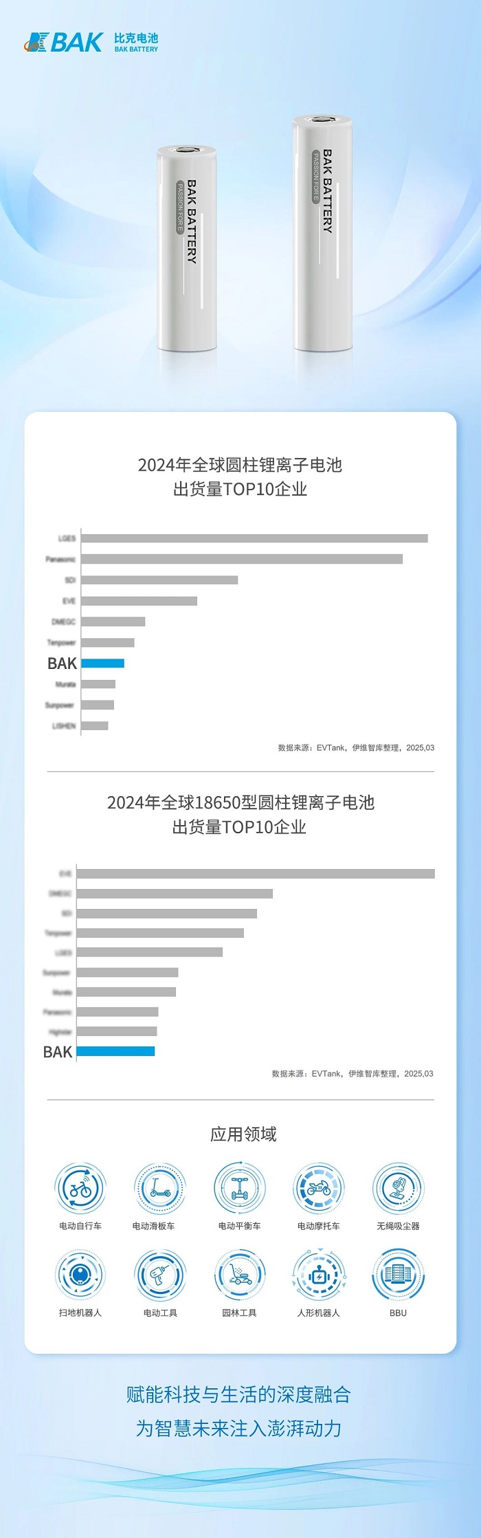 近日,研究机构EVTank联合伊维经济研究院共同发布了《中国圆柱电池行业发展白皮书(2025年)》。白皮书同步披露了2024年全球圆柱形锂离子电池出货量TOP10企业名单及2024年全球18650型号的圆柱锂离子电池出货量TOP10企业名单,比克电池进入两项名单。