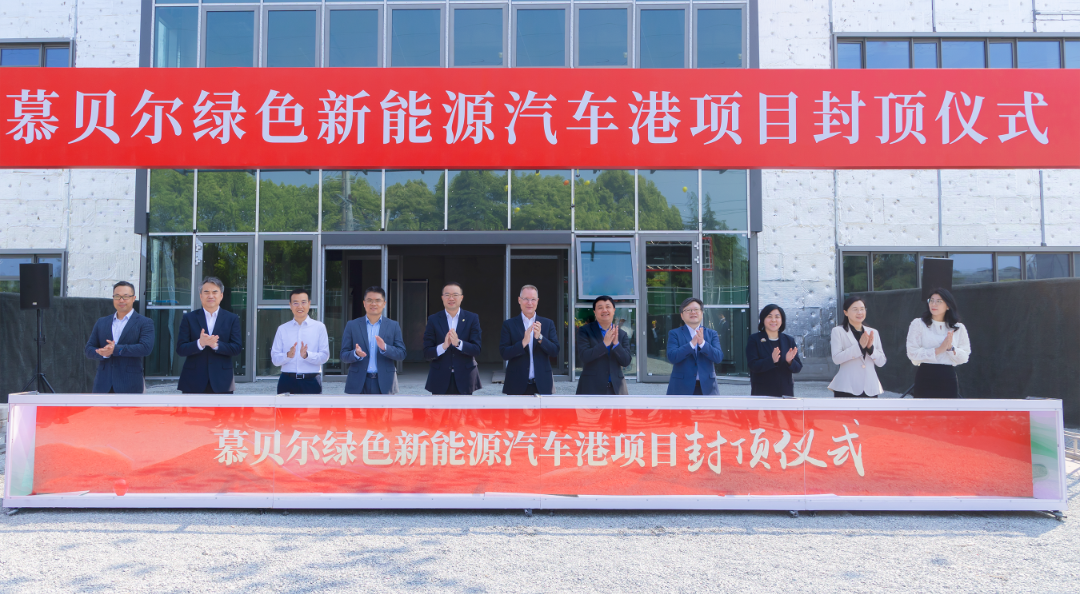 现场,慕贝尔绿色新能源汽车港项目正式封顶。汪香元等共同完成项目的封顶仪式。
