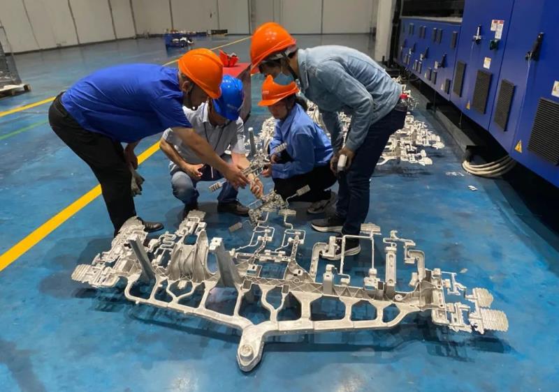 此次试制的镁合金CCB产品长度超1.5米,单次注射量达8公斤,成品重量仅4.6公斤,较传统钢制部件减重50%以上。通过半固态压铸工艺,产品抗拉强度提升10%-20%,耐疲劳寿命及耐腐蚀性能显著优于传统工艺,同时彻底解决缩松、气孔等铸造缺陷,致密度达98%以上。