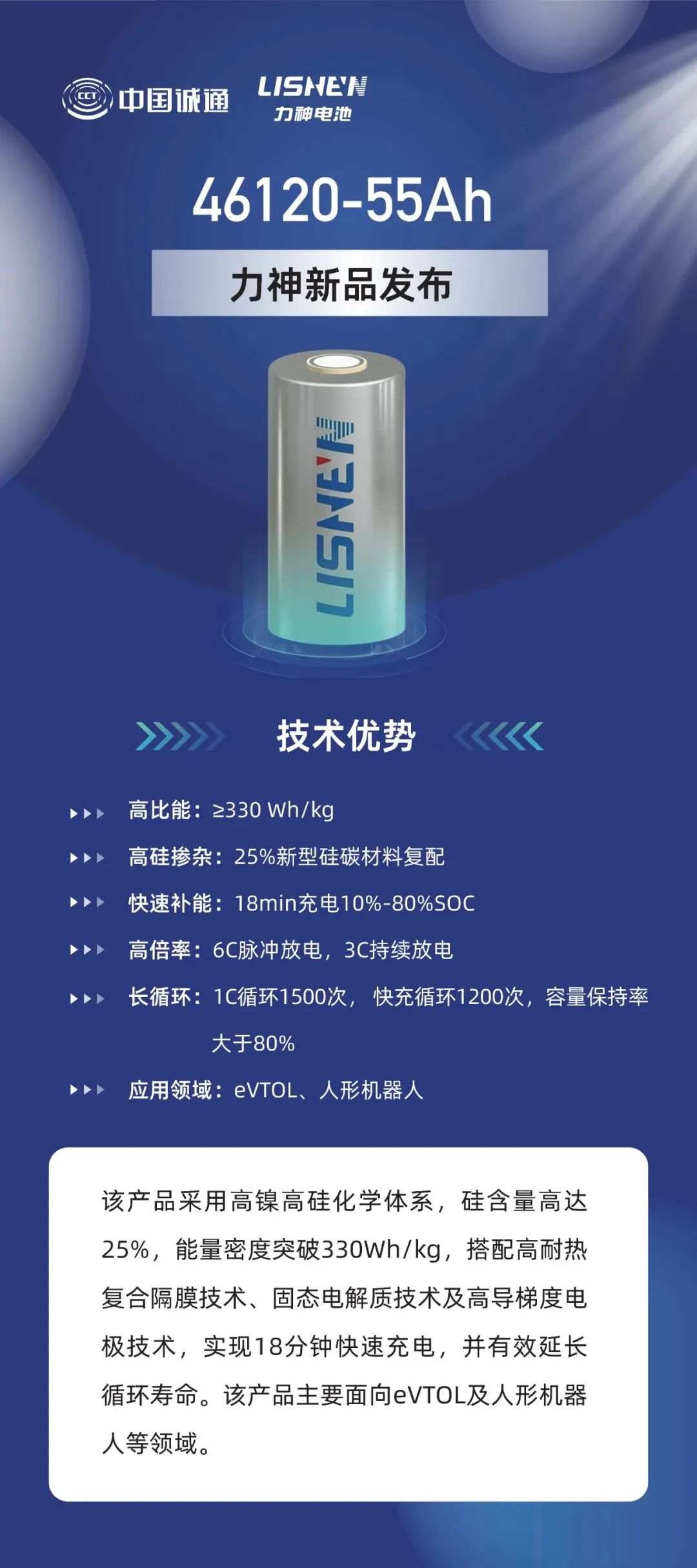 近年来,固态电池颇受行业追捧,而固态电池量产的关键在于固态电解质。值得注意的是,此次发布的六款电池中,21700 55PT-5.5A和46120-55Ah均采用了固态电解质,这也是力神首次在固态电池领域进行尝试。