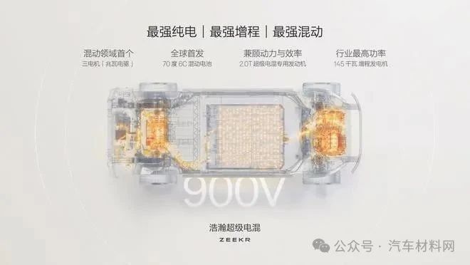 【汽车材料网】7月9日,极氪在浩瀚-S暨极氪9X技术发布会上,正式发布全球首个基于纯电架构打造的豪华电混专属架构浩瀚-S,全面继承SEA浩瀚架构纯电优势,底层能力与创新技术领先一代,其中核心技术浩瀚超级电混,是极氪在新能源技术领域的又一项重大突破。