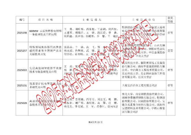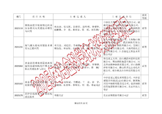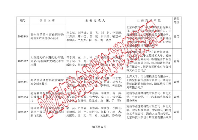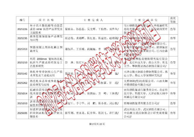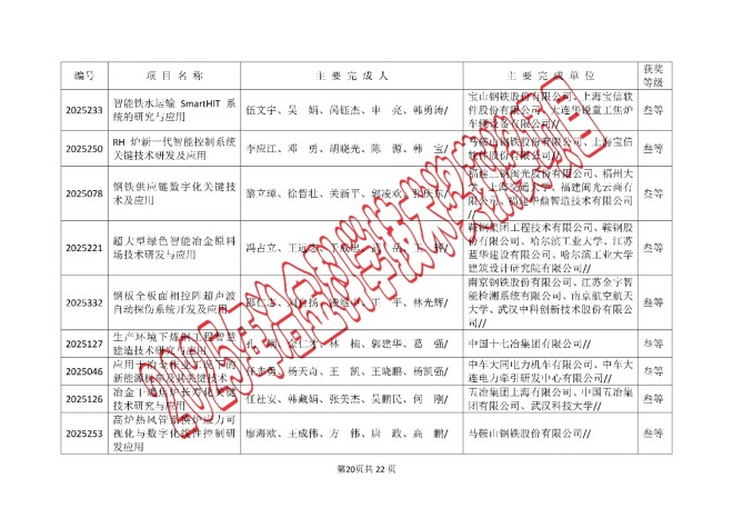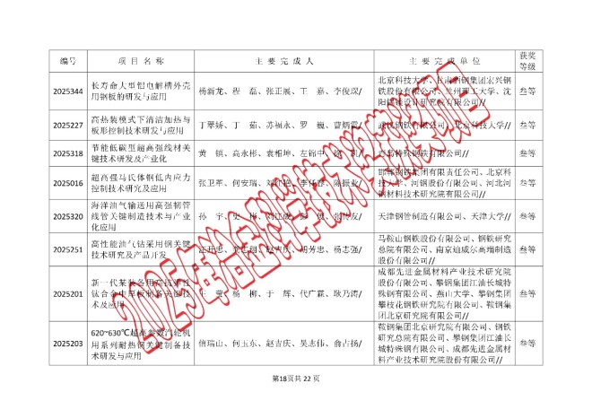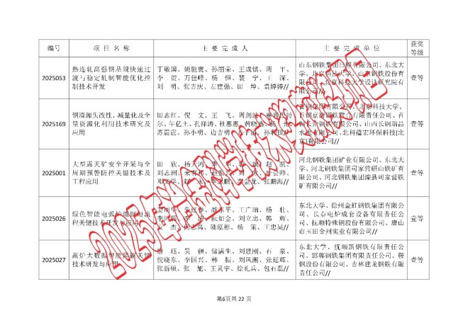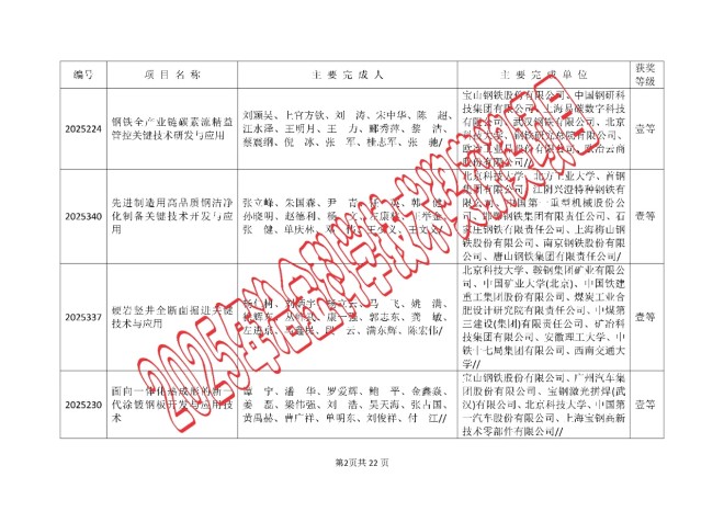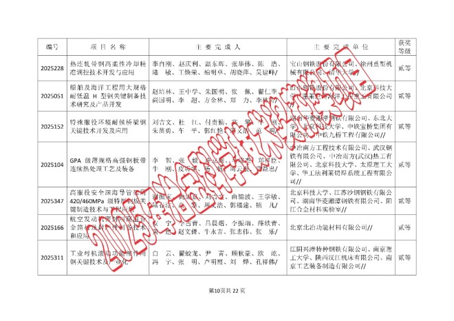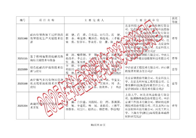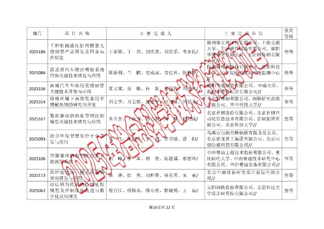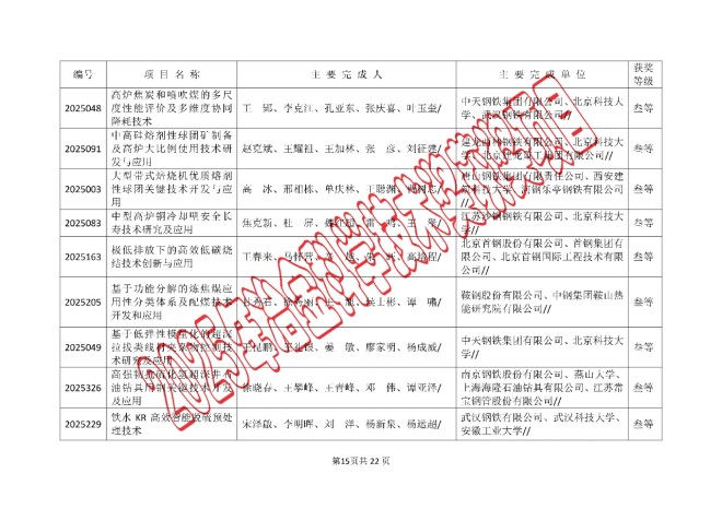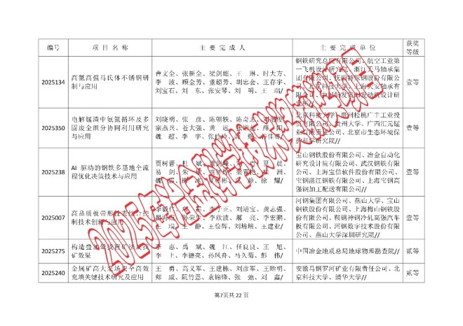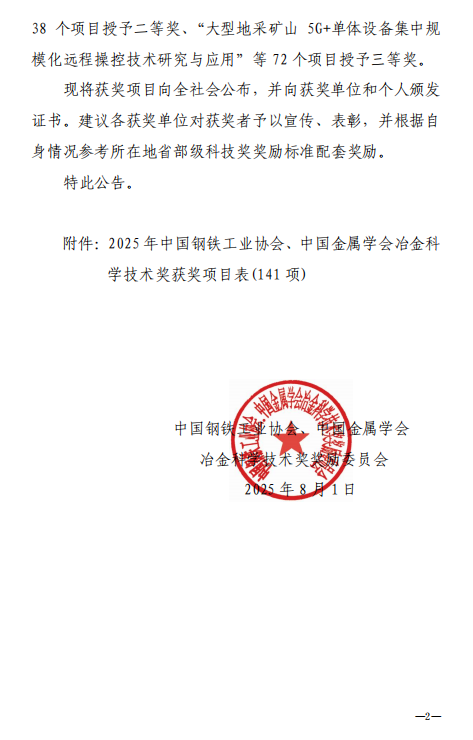 2025年中国钢铁工业协会、中国金属学会冶金科学技术奖的公告