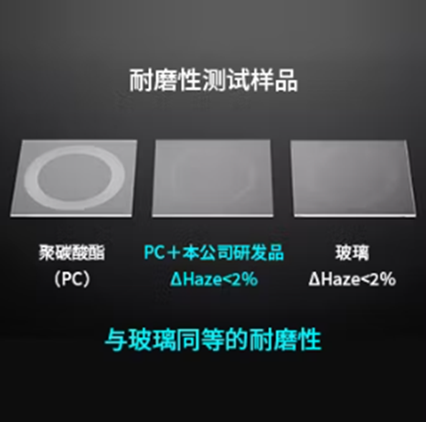 无需等离子体CVD法成膜即可满足挡风玻璃耐磨要求,Taber测试结果显示其耐磨性媲美玻璃。