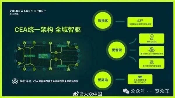 2024年7月,双方又签订电子电气架构技术战略合作联合开发协议,全力投入为大众在华生产的CMP和MEB平台开发行业领先的电子电气架构。2026年起,大众汽车品牌在中国市场推出的所有纯电动车型都将搭载这一电子电气架构。