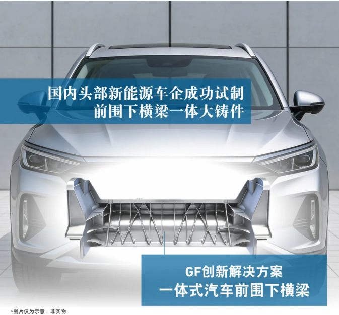 日前,GF成型方案与国内某头部新能源车企展开深度协作,成功完成了铝合金前围下横梁一体大铸件的试制,在车身一体化领域迈出了重要一步。