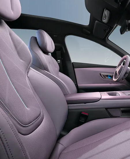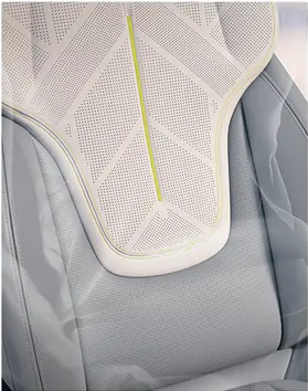 座椅全系标配前排通风/加热/记忆/礼让功能。座椅材料采用环保级亲肤PU柔性表皮,保证舒适性。表面以晶石切割,雕琢数字徽章,每一组孔列都如钻石切面般精准