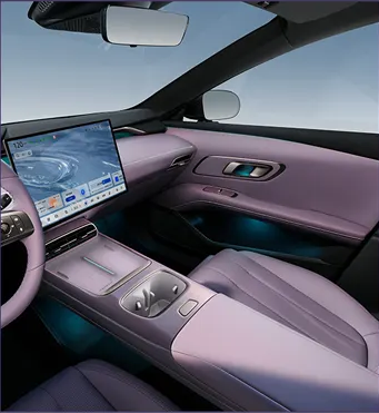 中控及门板区域高端饰面:双色注塑工艺的水晶质感装饰面板,座舱空间精致点缀