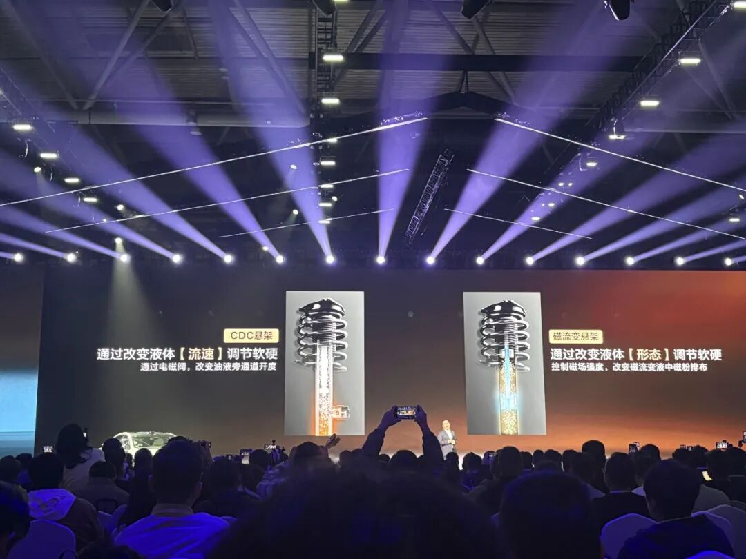 底盘和操控方面,全系车型均采用了前麦弗逊式独立悬架+后五连杆式独立悬架的结构(后置后驱的驱动方式)。真正让深蓝L06在同级别车型中脱颖而出的,是其搭载的京西智行第四代MagneRide磁流变主动悬架系统。这项技术以往多见于法拉利、兰博基尼等超跑车型上,其核心原理是利用磁流变液在磁场作用下改变粘度的特性,实现阻尼的毫秒级调节。系统能够以每秒1000次的频率扫描路面,当车辆经过颠簸路段时,悬架变软吸收冲击;而在高速过弯或紧急变道时,悬架瞬间变硬提供强力支撑。这种“软硬兼施”的特性,有效解决了传统家用车在舒适与操控之间难以兼顾的痛点。(磁流变液材料配方,磁体为直径3一10μm的羰基铁粉,比头发丝细10倍;母液为抗高低温的特殊油液,能扛-40℃到105℃极端环境)