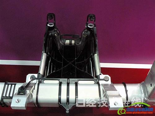 A-Class中采用的工艺是将铝合金加工成梁后整体喷涂PA粉末、然后进行嵌入成型加工,也可以在制造铝合金板及钢板时喷涂PA粉末,事先设置粘合层。