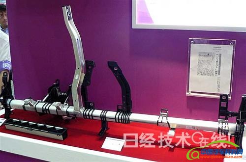 日本大赛璐-赢创公司(Daicel-Evonik)在2013年9月25~27日于东京有明国际会展中心举行的“电动汽车开发技术展”上,展出了戴姆勒公司梅赛德斯·奔驰品牌新款“A-Class”的转向悬挂梁(Steering Hanger Beam)。该部件使用大赛璐-赢创销售的德国赢创(Evonik)生产的PA(聚酰胺)粉末“VESTAMELT”、采用铝合金和树脂的嵌入成型加工制成,提高了接合强度。