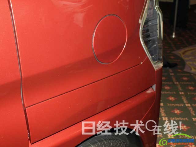 加油盖和位于其下方的导轨盖由AES(丙烯腈-乙烯-苯乙烯共聚物)制成(图4)。AES接近于经常使用的ABS(丙烯腈-丁二烯-苯乙烯共聚物),但特点是耐热性高。由于此处是遮挡汽油的位置,因此与耐热性相比,大发决定采用AES是因为其出色的耐油性。
