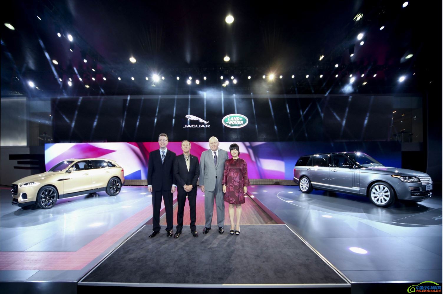 从左至右:路虎中国执行副总裁柏睿安先生、捷豹全球高新产品设计总监Julian Thomson先生、捷豹路虎中国总裁高博先生、捷豹中国执行副总裁车艳华