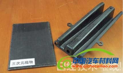 此外,丰田自动织机公司还开发出了三维织物(图15),可用于碰撞吸能盒的新预成型坯。该产品并不是二维纤维片,在将纤维片层叠之后还沿着Z轴方向穿过了纤维丝(图16)。