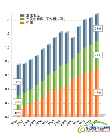 每年钢铁的产量超过 16 亿吨。目前,中国大陆生产和消费的钢铁占 45%。钢铁产量将会继续增长,尤其是在拉丁美洲、亚洲、非洲和印度次大陆等发展中地区,钢铁在这些发展中地区更是关系到社会福祉的提高,这些地区有超过60%的钢铁消费量被用于建设新的基础设施。