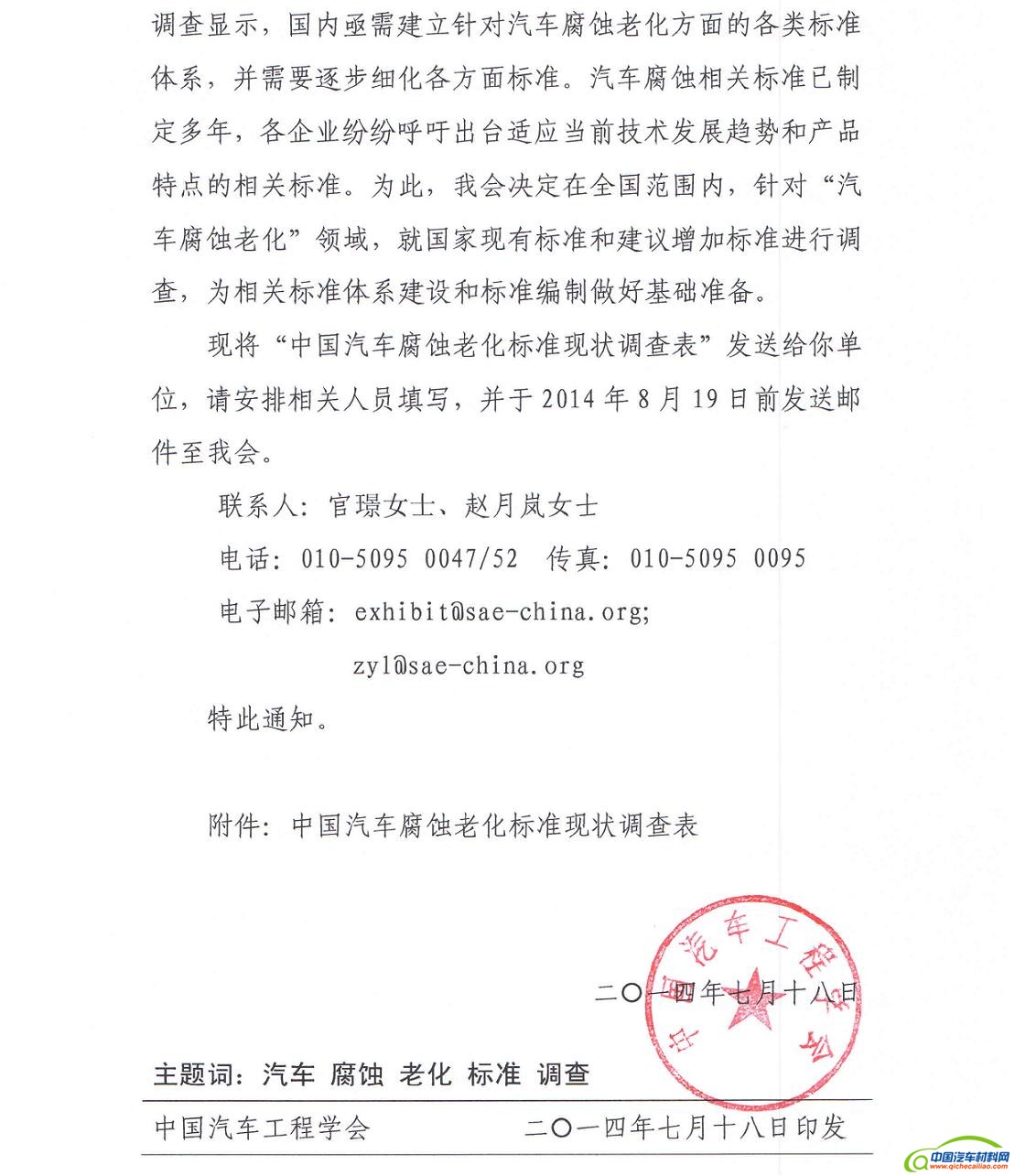 核心提示:附件下载:1.关于开展中国汽车腐蚀老化标准现状调查的通知;2.中国汽车腐蚀老化标准现状调查表。