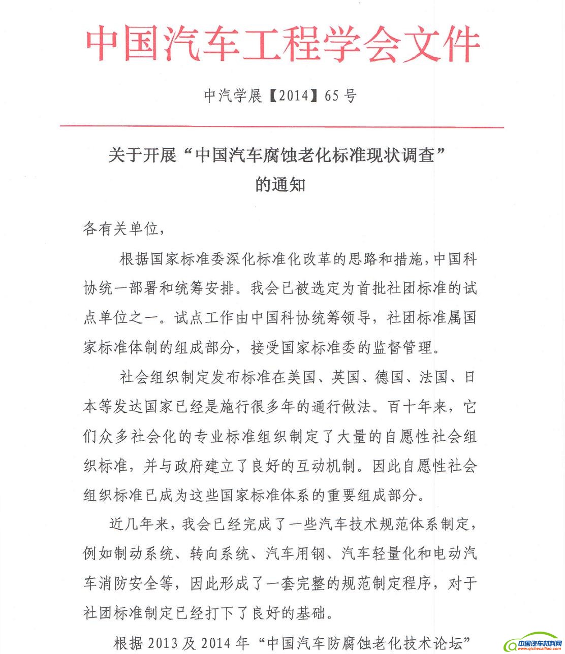 关于开展“中国汽车腐蚀老化标准现状调查”的通知