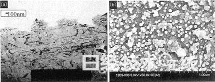 | 图2(b):大成PLAS公司2000年代初期刚刚开发出该技术时的锚固效应显微镜图片 铝合金与PBT(聚对苯二甲酸丁二醇酯)的接合界面(左)与接合后让铝合金部分熔化只留下PBT的状态(右)。 |