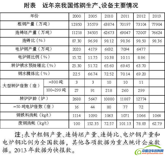 各项技术经济指标取得进步。近年来我国炼钢生产、设备主要情况见附表。
