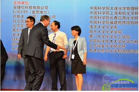 (侯宇哲博士在中国化学会第29届学术年会上为四位中国杰出青年科学家颁奖)