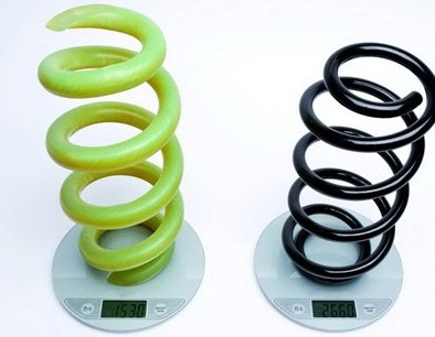 玻璃纤维增强塑料弹簧(Fiberglass Reinforced Plastic (FRP)):这种材料其实就是我们熟悉的玻璃钢,由玻璃钢打造的悬挂弹簧将比现在的弹簧轻40%,全新的FRP悬挂有望于今年发布,并于奥迪R8 e-tron上率先使用。