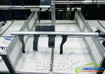 大成PLAS展示了利用“NMT”技术制造的转向悬梁,这项技术通过使用自主方式对金属实施表面处理,实现了金属与树脂的牢固结合(图19)。转向悬梁由铝合金管与树脂支架结合而成。今后,这项技术将接受汽车企业对于接合品质的评价。
