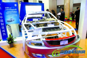 图为用塑料代替金属零件,实现汽车轻量化,达到节能减排的车模。(CFP 供图)