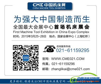 近两年来,随着我国国民经济各领域的产业结构调整、升级进一步加速,战略性新兴产业的逐步壮大。企业进一步加速国际化、全球化进程。使得制造行业对高精、高速、高效、智能型中高档数控机床的需求明显增加。高端装备制造业又迎来新一轮发展机遇。作为以高新技术和高新产品为展示主体的大型机床展会(CME2015),将大力推进自主创新,全面展示从“中国制造”到“中国创造”的发展成果。展会将秉承“为强大中国制造而生”的办展宗旨,促进国产数控机床的产业化发展,推动我国由机床大国向机床强国转变。构筑国内外客商在产品交易、技术交流和投资洽谈的大舞台。