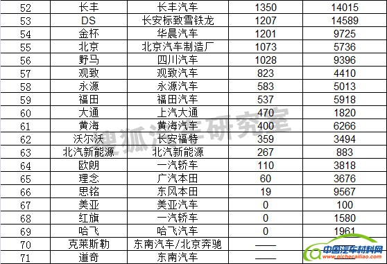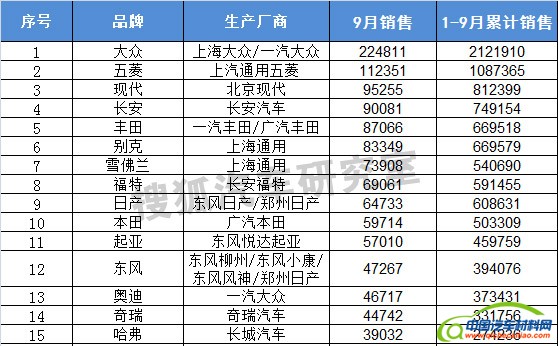 据搜狐汽车研究室获得的最新数据显示:2014年9月份国内广义乘用车销量1,690,810辆,1-9月广义乘用车累计销售14,162,142辆。其中9月份轿车销量1,073,500辆,SUV销量355,010辆,MPV销量166,203辆,微客销量96,097辆。以下是9月份广义乘用车品牌销量排名情况: