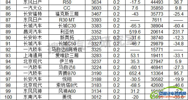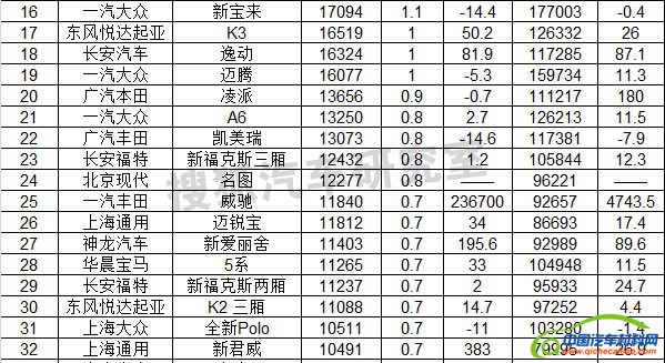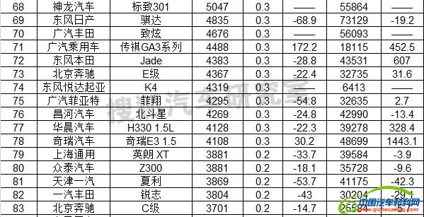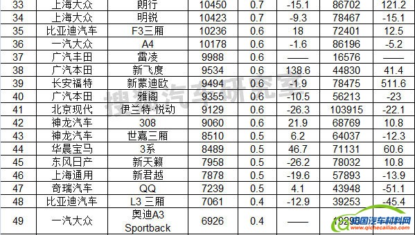 *表格中的比重为该车型销量占狭义乘用车总销量的百分比