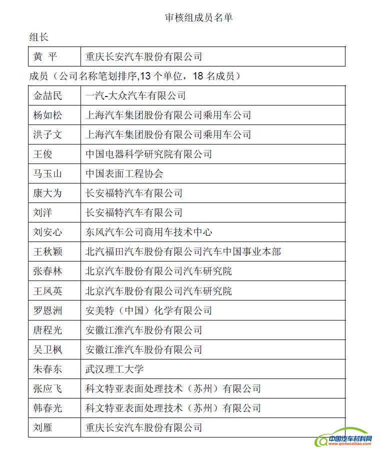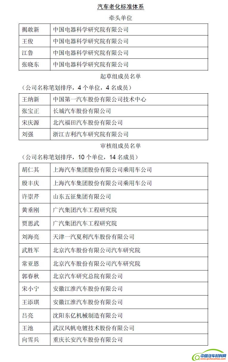 核心提示:中国汽车腐蚀老化标准体系工作组名单公示通告