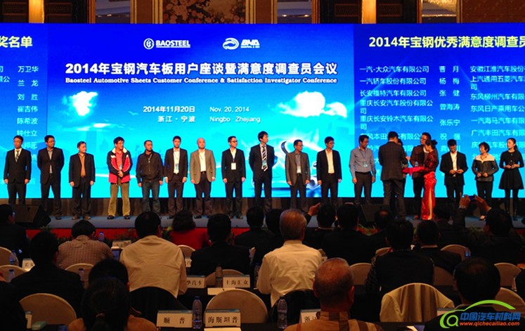 宝钢股份总经理戴志浩、副总经理王静出席会议并讲话。237家国内汽车及零部件制造企业的近400余人参加会议。17名来自国内汽车制造行业的“2014年度宝钢优秀满意度调查员”受到表彰。