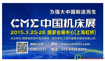 中国机床展2015年3月25-28日盛势登陆上海。正值国内外企业预算丰盈之时,采购需求蓄势待发。中国机床展展览规模达60,000平方米,有来自美国、 英国、法国、意大利、瑞士、德国、日本、新加坡、印度、台湾、香港、澳门等国内外千余家企业参展。达到3,000个展位。展品种类、规格齐全,1,000余台套整机和大型量仪展品涵盖了车、钻、镗、磨、铣、刨、插、拉、锯、齿轮加工、螺纹加工、花键加工、特种加工和刻线机、各类技术工艺一应俱全。展会专设国内馆和国际馆,以满足国内外展商的不同需要。展会特设主题展区:金属切削机床展区、刀具及工具展区、金属成形机床展区、数控系统展区、机床附件展区、机械自动化展区、3D技术展区、工业机器人展区等。CME中国机床展作为产品采购、品牌推广、技术交流、信息共享的专业化、品牌化、效益化展览商贸平台,为了提供更优质的观展服务,方便专业观众更好来到我们的展会,CME观众预登记系统已全面上线。据悉,通过CME中国机床展官方网站、官方微信以及官方合作媒体等渠道都已开通专业观众预登记系统,完成在线登记,可免去现场排队的苦恼,为您节省宝贵时间,更有惊喜大礼等着您。