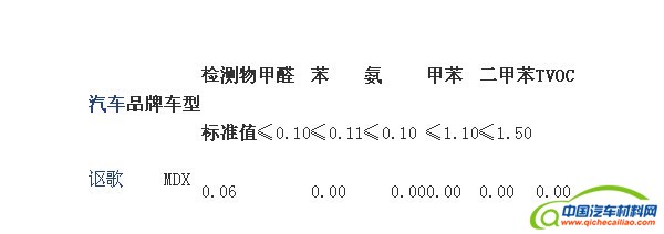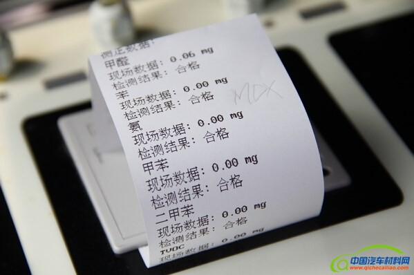 本次讴歌MDX车内空气检测结果显示,即使是刚刚购买的新车,其车内甲醛含量也是极低,而且其它有害元素甲苯、苯、氨、二甲苯、TOVC的含量仪器未曾检出。
